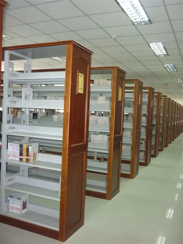 雙柱雙面六層木護(hù)板書架